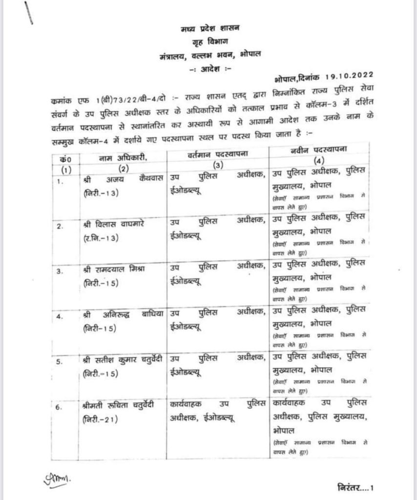 Transfer उप पुलिस अधीक्षक स्तर के अधिकारियों के ट्रांसफर By Aajkakhulasha On Oct 19, 2022 🔊 Listen This News गृह विभाग द्वारा पुलिस सेवा संवर्ग के उप पुलिस अधीक्षक स्तर के अधिकारियों को वर्तमान पदस्थापना से स्थानांतरित कर अस्थायी रूप से आगामी आदेश तक नवीन पदस्थापना के आदेश जारी किए गए हैं। Transfer उप पुलिस अधीक्षक स्तर के अधिकारियों के ट्रांसफर