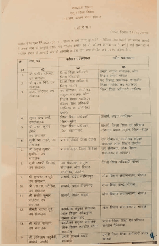 Transfer स्कूल शिक्षा विभाग में जिला शिक्षा अधिकारीयो के हुए तबादले