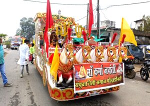 घोड़ाडोंगरी । सर्व तेली समाज द्वारा आज मां कर्मा जयंती के अवसर पर भव्य कार्यक्रम का आयोजन किया गया। सुबह 10 बजे से राठौर मैरिज लॉन से नगर में भव्य शोभायात्रा निकाली गई। जिसमें बड़ी संख्या में सामाजिक बंधु शामिल हुए। मां कर्मा के आकर्षक झांकी रथ पर सवार थी।