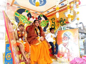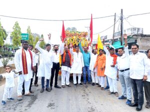 नगर वासियों ने जगह-जगह पुष्प वर्षा कर स्वल्पाहार से शोभा यात्रा का स्वागत किया।