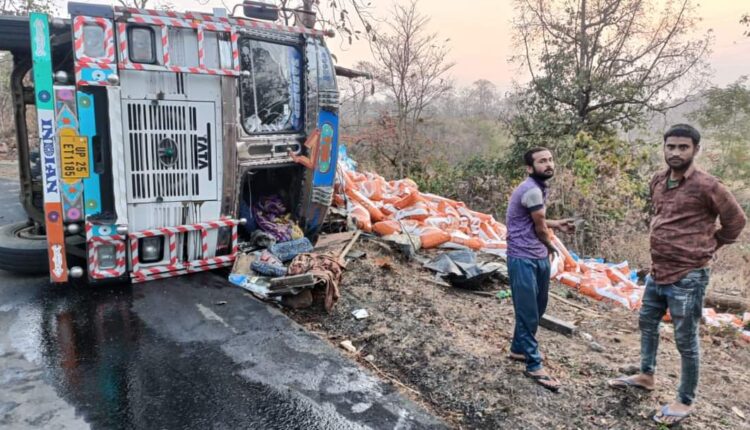 CHHINDWARA के थाना पांढुर्ना के अंतर्गत राजना घाटी पर ट्रक अनियंत्रित होकर पलट जाने से घायल चालक को, डायल-112/100 सेवा ने पांढुर्ना अस्पताल मे भर्ती करवाया
