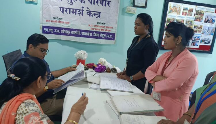 आज ग्राम भारती महिला मंडल द्वारा संचालित परिवार परामर्श केंद्र में राज्य समाज कल्याण बोर्ड भोपाल के सचिव पीयूष खारे एवं सयुक्त संचालक अधिकारी महिला बाल विकास बैतूल से संजय जैन द्वारा निरीक्षण किया इस दौरान दोनों काउंसलर श्रीमति शबनम शेख व कविता कवडे एवं संस्था अध्यक्ष श्रीमति भारती अग्रवाल उपस्थित थे। निरीक्षण के दौरान काउंसलरों को सुझाव दिया की सभी शासकीय और प्राइवेट कॉलेज एवं स्कूल में जाकर बच्चो से चर्चा करे कुछ बच्चे मानसिक एवं शरारिक रूप से डिस्प्रेशन में रहते है