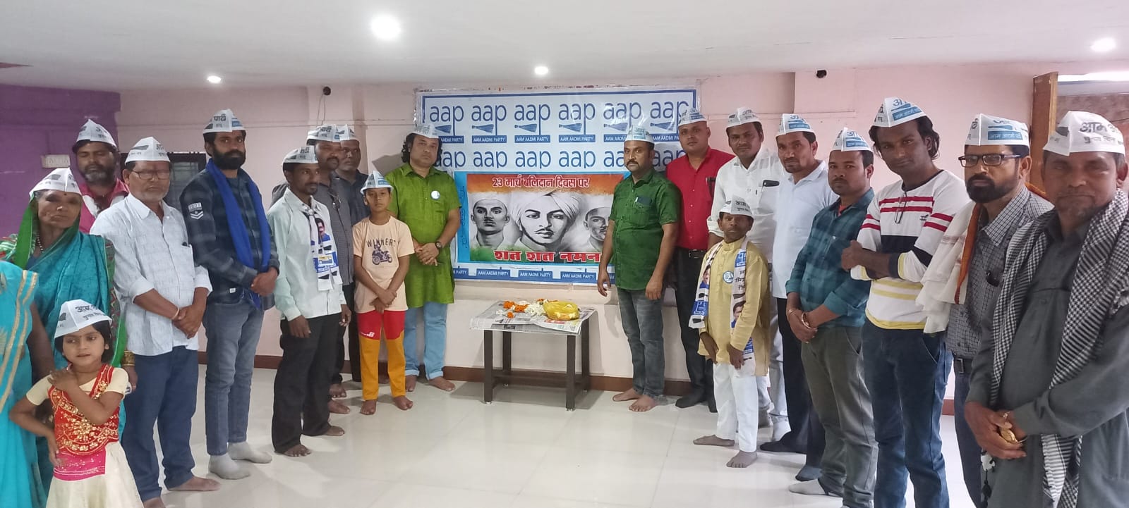 सारणी। आम आदमी पार्टी सारणी कार्यालय में पार्टी के पदाधिकारी कार्यकर्ताओं के द्वारा एकत्र होकर मां भारती के वीर सपूत शहीदे आजम अमर शहीद भगत सिंह, राजगुरु,सुखदेव जी के द्वारा उनके जीवनकाल में जो भारतीय स्वतंत्रता संग्राम में उन्होंने अंग्रेजी की हुकूमत के खिलाफ बढ़-चढ़कर क्रांति के लिए देश के प्रति समर्पण और निस्वार्थ सेवा भाव से शहादत दी