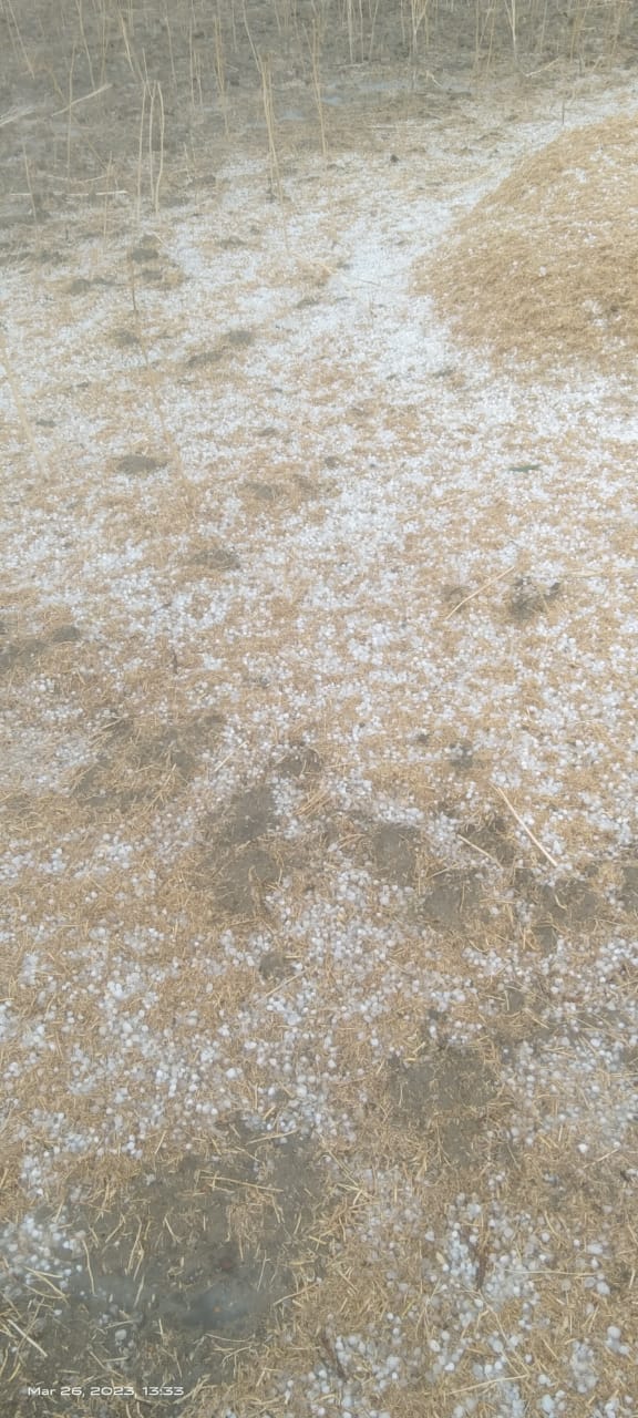 पन्ना। जिला में कल दिनांक 26 मार्च 2023 रविवार दोपहर 1 से 2 बजे को भारी ओलावृष्टि हुई है। जिसमें किसानों की फसल पूरी तरह से नष्ट हो गई है। ओला के बताये जा रहे है। किसानों की खेतों में खड़ी गेंहू और चना की फसल सम्पूर्ण रुप से चौपट हो गई है।