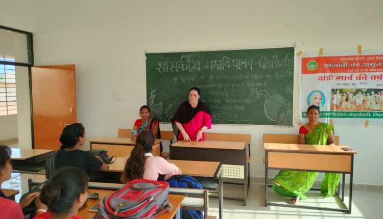 शासकीय महाविद्यालय घोड़ाडोंगरी में प्राचार्य डॉ देवी सिंह सिसोदिया की अनुमति से कार्यक्रम संयोजक डॉ यासमीन जिया के द्वारा मुख्यमंत्री जी की अंतर्राष्ट्रीय महिला दिवस पर की गई घोषणा क्रमांक 0537 एवं 0538 के क्रियान्वयन के संदर्भ में महाविद्यालय में परिचर्चा का आयोजन किया गया कार्यक्रम के प्रारंभ में डॉ यास्मीन जिया द्वारा कार्यक्रम का उद्देश्य एवं महिला आत्मनिर्भरता संबंधित जानकारी दी