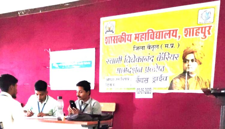 Shahpur news : शासकीय महाविद्यालय शाहपुर में मंगलवार को स्वामी विवेकानंद करियर मार्गदर्शन प्रकोष्ठ के तत्वाधान में स्नातक एवं स्नातकोत्तर अंतिम वर्ष में अध्ययनरत विद्यार्थियों हेतु केंपस ड्राइव का आयोजन किया गया। इस केंपस ड्राइव में जिज्ञासा रर्बन कंपनी भोपाल द्वारा सेल्स रिलेशनशिप ऑफिसर के पद हेतु विद्यार्थियों का साक्षात्कार लिया गया।