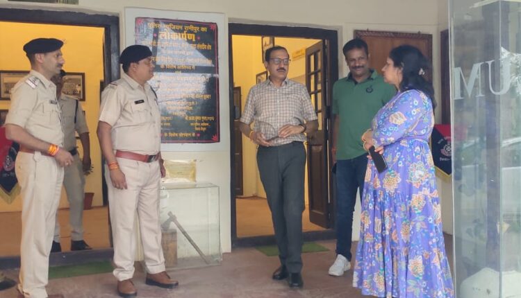 अतिरिक्त पुलिस महानिदेशक जी पी सिंह एव बैतूल पुलिस अधीक्षक सिद्धार्थ चौधरी ने रानीपुर पुलिस म्यूजियम का किया निरीक्षण। रानीपुर। शुक्रवार शाम को लगभग 5:00 बजे अतिरिक्त पुलिस महानिदेशक श्री जीपी सिंह एवं बैतूल पुलिस अधीक्षक सिद्धार्थ चौधरी ने रानीपुर म्यूजियम का निरीक्षण कर ब्रिटिश कालीन पुलिस के द्वारा उपयोग में उपयोग में लाए जाने वाले ड्यूटी के दौरान उन वस्तुओं बंदूकके रोजमर्रा की वस्तुएं जमाने में अधिकांश बर्तन पीतल एवं तांबे के उपयोग में लाए जाते थे