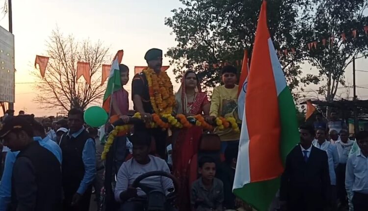 आमला।ग्राम ससाबड़ के सैनिक द्वारा सेना में 28 साल सेवा देकर सेवानिर्वत्त होने पर शनिवार 13 मई को ग्राम आगमन पर ग्रामीणों द्वारा भव्य स्वागत कर पँखा आमला सडक मार्ग पर स्थित ससाबड़ बस स्टैंड से ग्राम तक जुलूस रैली निकालकर बाजे गाजो के साथ घर तक पहुचाया गया इस रैली में पूर्व सैनिक संघ के सदस्य भी शामिल हुए