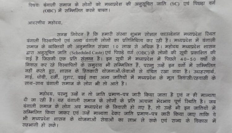 Demand to include the people of Bengali community in Scheduled Castes (SC) and Backward Classes (OBC) of Madhya Pradesh