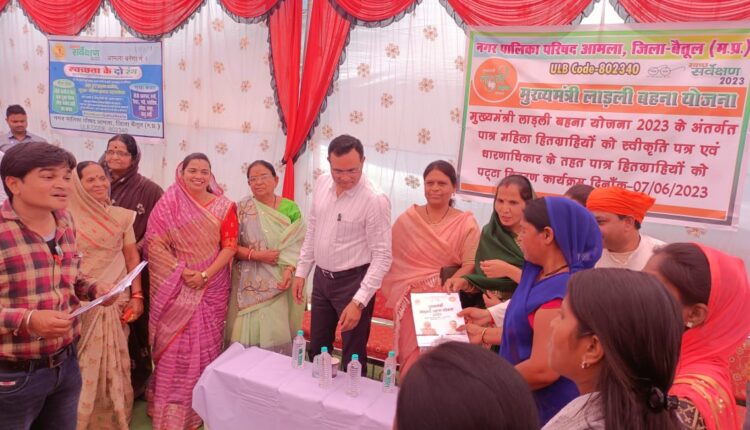गौरतलब है की लाड़ली बहना योजना अंतर्गत आमला नगर में 3750 अधिक पात्र महिलाएं लाभान्वित होगी एवम धारणा अधिकार अंर्तगत नगरीय क्षेत्र 48 हितग्राहियों को पट्टे वितरित किए गए