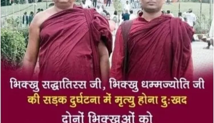 भोपाल। भिन्ड के बौद्ध धर्म की विचारधारा को जन जन तक पहुंचाने वाले सिध्दा तिस्म जी एवं पूज्यनीय भन्ते ज्योति जी का कल रात सड़क दुर्घटना में परिनिवाॅण हो गया है। दोनों भन्ते जी मुरैना से ग्वालियर चार पहिया वाहन से अपने ग्वालियर विहार 29 /06/2023 को रात्रि दस बजे सोमवार को लोट रहे थे। तभी पीछे से बडी गाड़ी ने टक्कर मारी जिससे चार पहिया वाहन पलट गया। उक्त हादसे में ग्वालियर चंबल संभाग के दो धम्म देशना का संदेश देने वाले पूज्यनीय भन्ते सिद्धतिस्म जी एवं परम पूज्यनीय भन्ते ज्योति मुरैना का सड़क दुर्घटना में परिनिवाॅण हो गया है।