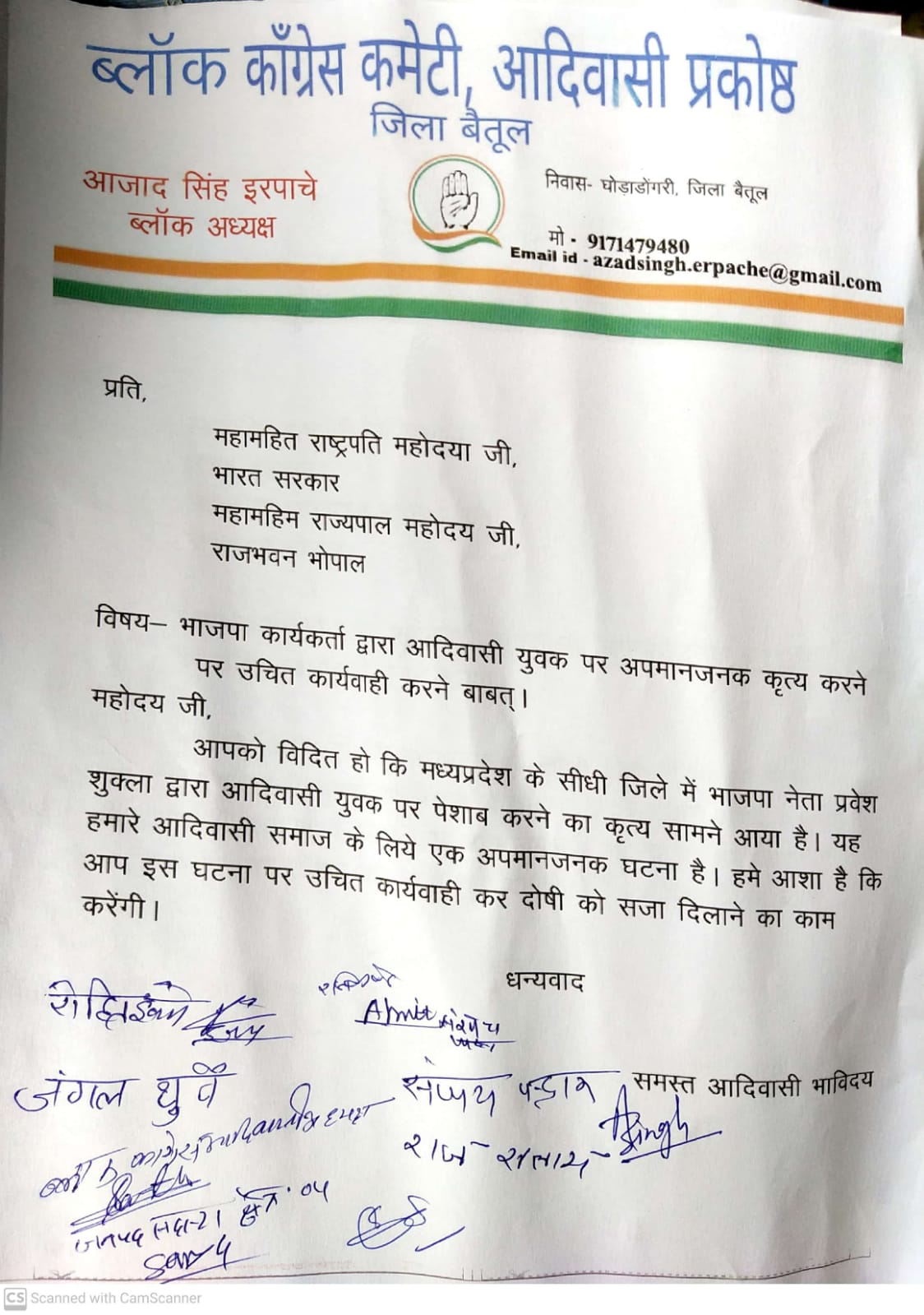 आदिवासी समाज के सभी सदस्य गण ब्लॉक अध्यक्ष आजाद सिंह इरपाचे ,जिला पंचायत सदस्य राजेंद्र कवडे जी, जिला उपाध्यक्ष कमलेश काकौड़िया , जनपद सदस्य संजू वट्टी, जनपद सदस्य संजू वाडीवा, रोहित इवने मीडिया प्रभारी, जंगल सिंह धुर्वे मंडलम अध्यक्ष ,संजय पद्राम अधिक संख्या में आदिवासी वर्ग के भाई उपस्थित थे इस अपराध के लिए चौकी प्रभारी को ज्ञापन दिया गया