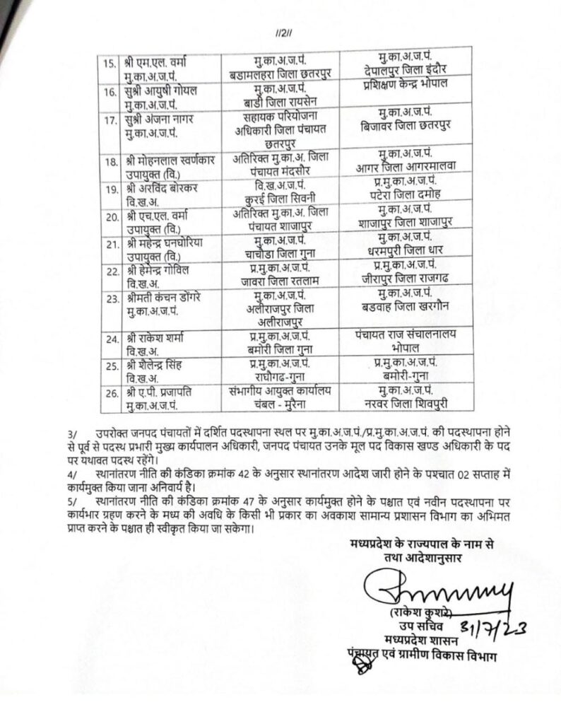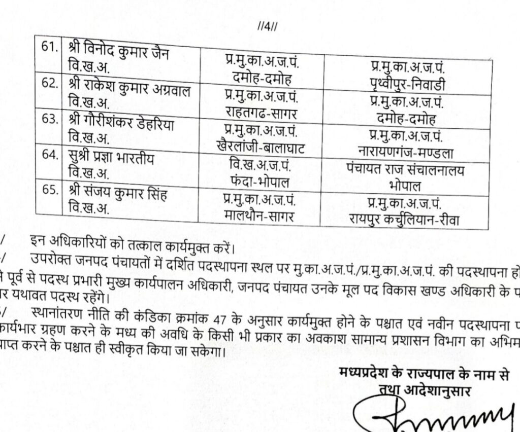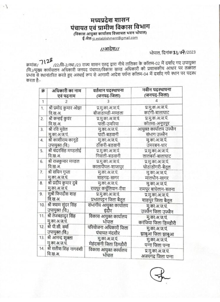 मध्यप्रदेश पंचायत एवं ग्रामीण विकास विभाग में हुए तबादलों में बैतूल जिले के घोड़ाडोंगरी और शाहपुर में सीईओ पदस्थ किए गए हैं जारी सूची में देखें कौन आएंगे यहां पर नए सीईओ