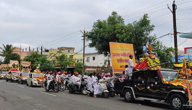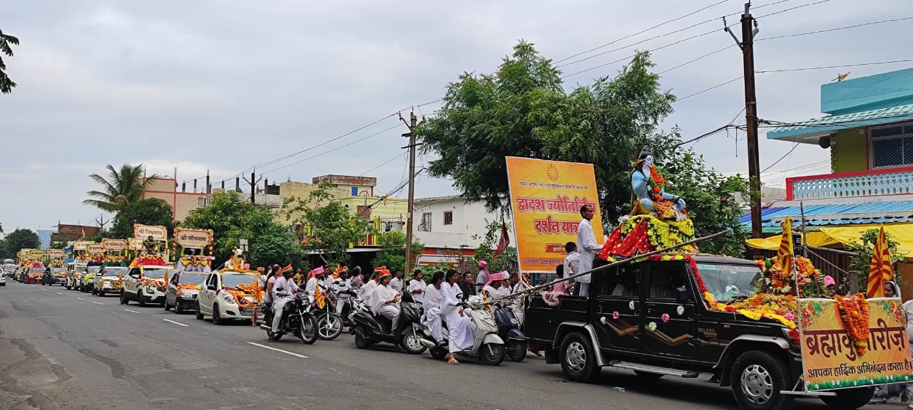 सारनी – ब्रह्माकुमारीज के सारणी स्थित सेवा केंद्र द्वारा श्रावण सोमवार और पुरुषोत्तम मास के पावन संगम पर भव्य दिव्य एवं आध्यात्मिक *द्वादश ज्योतिर्लिंग दर्शन यात्रा* का आयोजन किया गया।सारनी नगर पालिका अध्यक्ष किशोर वरदे द्वारा यात्रा का शुभारंभ किया गया। सारनी ,पाथाखेड़ा, शो भापुरा, बागडोना ,सलैया जैसे मुख्य स्थानों से गुजरती इस यात्रा में हजारों भक्तों ने द्वादश ज्योतिर्लिंग के दर्शन कर आरती ,पूजा ,अर्चना भी की तथा यात्रा में चल रहे हैं सभी लोगों को फल वितरित किए। इस यात्रा का मुख्य आकर्षण गाड़ियों पर 12 ज्योतिर्लिंग के रथ सजाए गए जिसमें सोमनाथ,विश्वनाथ,