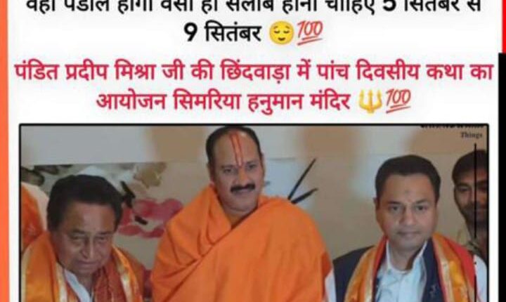 सिमरिया :- बागेश्वर धाम महाराज धीरेन्द्र शास्त्री की कथावाचन उपरान्त सितम्बर माह में पड़ित प्रदीप मिश्रा के श्रीमुख से शिव महापुराण कथा की जायेगी, सिमरिया हनुमान मंदिर में लगातार हो रहे विशाल धार्मिक आयोजनों से छिन्दवाडा की धरा पावन पावन होगी । सुप्रसिध्द पड़ित प्रदीप मिश्रा कमलनाथ के अग्राह पर पांच दिवसीय शिवपुराण कथा के लिए 5 सितम्बर को छिन्दवाड़ा सिमरिया पहुॅचेगें, उनके पहुँचने से वातावरण धर्म मय भक्तिमय होगा। ज्ञात हो कि हाल ही में सिमरिया हनुमान मंदिर में धीरेन्द्र शास्त्री ने तीन दिवसीय राम हनुमान कथा का वाचन