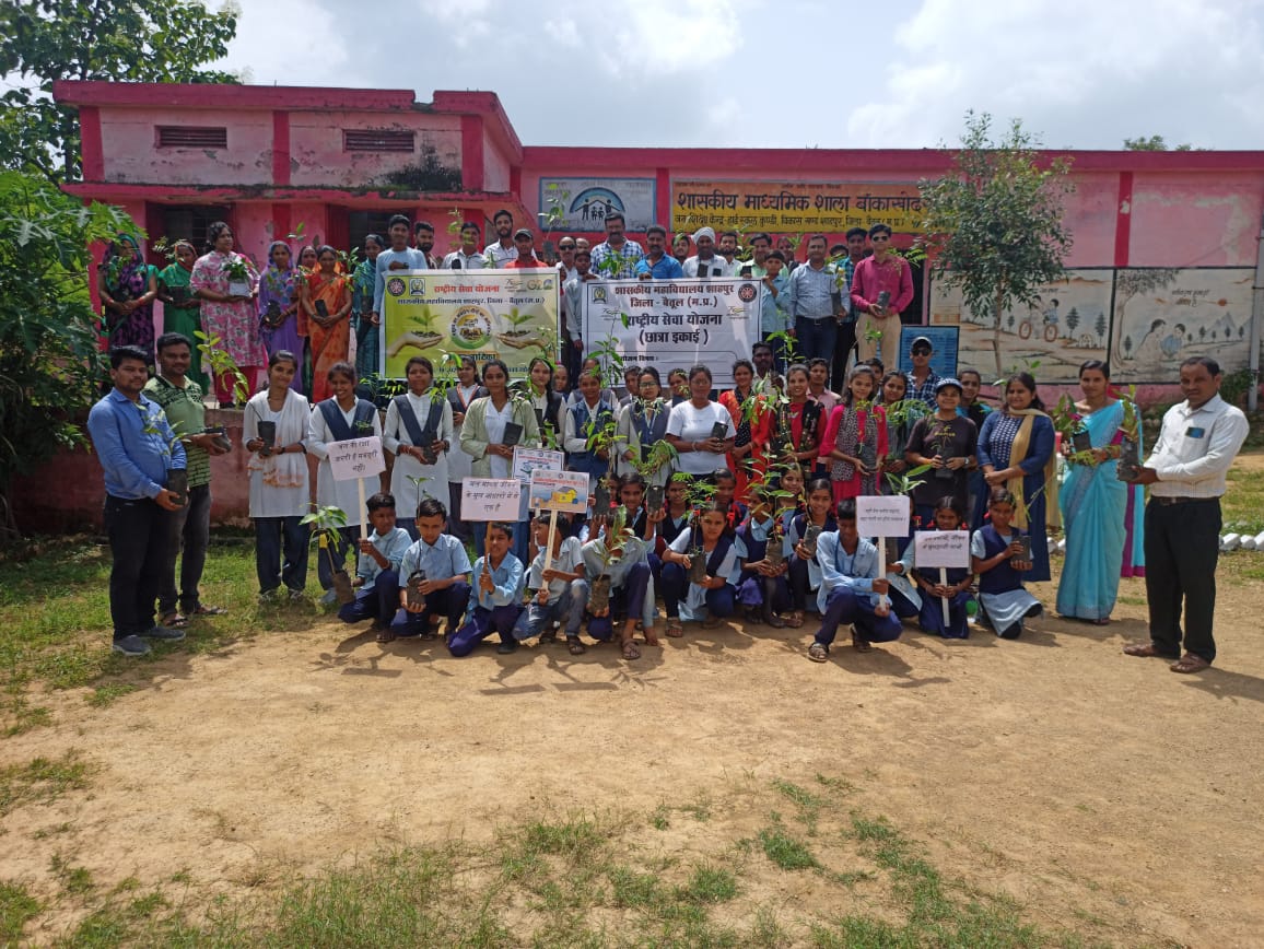 शासकीय महाविद्यालय शाहपुर की राष्ट्रीय सेवा योजना संयुक्त इकाई के तत्वाधान में आजादी के अमृत महोत्सव के समापन समारोह के अंतर्गत मेरी माटी मेरा देश अभियान के अंतर्गत गोद ग्राम बांका खोदरी में 75 फलदार एवं छायादार पौधों का रोपण गुरुवार को किया गया। इस कार्यक्रम के प्रारंभ में प्राचार्य प्रो एम डी वाघमारे, जन भागीदारी समिति अध्यक्ष नितिन महतो एवं विधायक प्रतिनिधि धर्मेंद्र शुक्ला द्वारा पुष्पाहार,श्रीफल एवं तिलक लगाकर पूर्व सैनिक सुरेश वर्मा