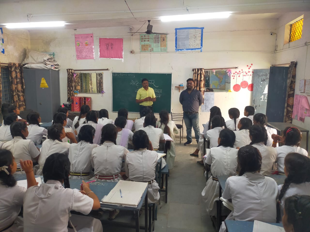 गया साथ ही टीम की मेम्बर भारती पवार द्वारा छात्राओं को शारिरिक साफ सफाई एवं परिवार को कैसे स्वस्थ रखे इस बारे में जानकारी दी गई साथ ही घर के आसपास सफाई और सिजनेबल बीमारियों के बारे में जागरूक किया स्कूल में वोकेशनल शिक्षक श्री मति गरिमा मैडम ओर योगेश गोहिया द्वारा इस कार्यक्रम का आयोजन किया और यूनाइटेड की टीम का आभार व्यक्त किया।