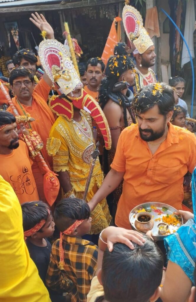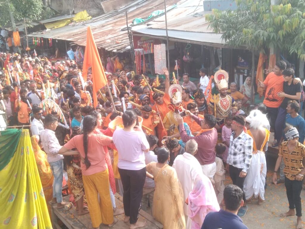 यात्रा में भूत प्रेत की बारात आगे आगे चल रही थी,उनके साथ भगवान शंकर,कार्तिक,गणेश, व नंदी भी चल रहे