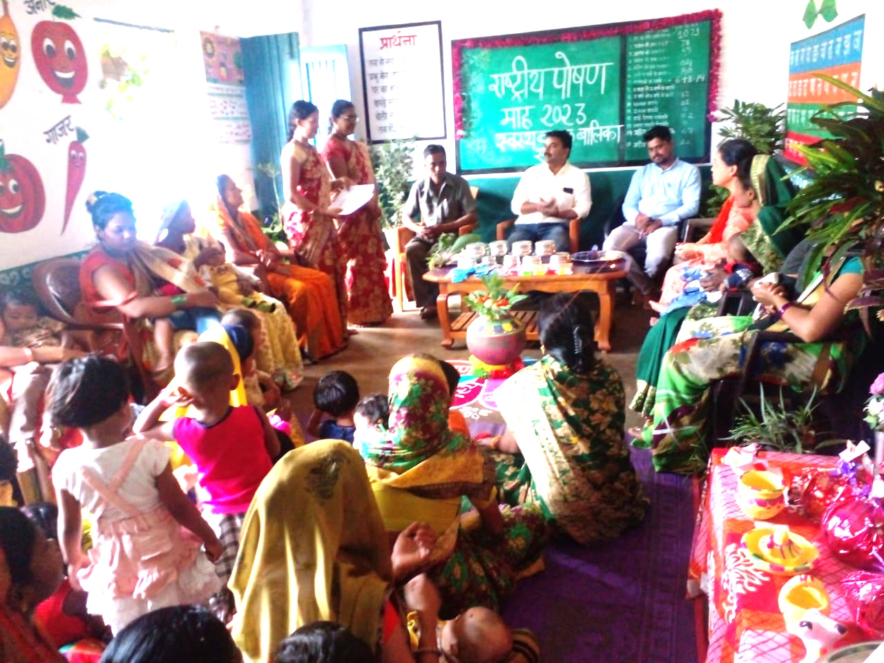 आंगनबाड़ी के लिए श्रीमान पवन सोलंकी द्वारा पंखा दिया गया एवं कार्यक्रम में उपस्थित पर्यवेक्षक अनामिका जारी एवं ब्लॉक कोऑर्डिनेटर मोहित चौक से ने पोषण शारीरिक माप एवं टी एच आर के उपयोग के बारे में महिलाओं को जानकारी दी इन्हीं के साथ श्री दीपक जैन ने मैं आंगनबाड़ी के लिए और बच्चों के