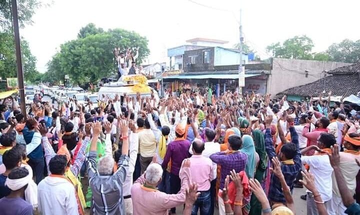 प्रदेश में बह रही है सभी वर्गों के लिए काम किया है उन्होंने लोगों से भाजपा विजय का संकल्प कराया ढोल नगाड़े पटाखे फुल माला लोगों का उत्साह देखते ही बनता था इस अवसर पर भाजपा के वरिष्ठ नेता रामजीलाल उईके जनसंघी नेता दशरथ राठौर जगदीश प्रसाद राठौर नंदू भैया गेलेंद्र राठौर अजय