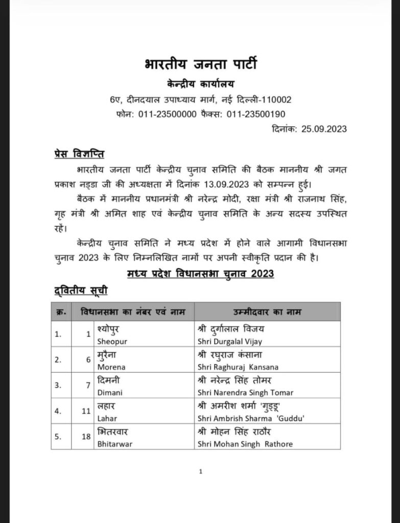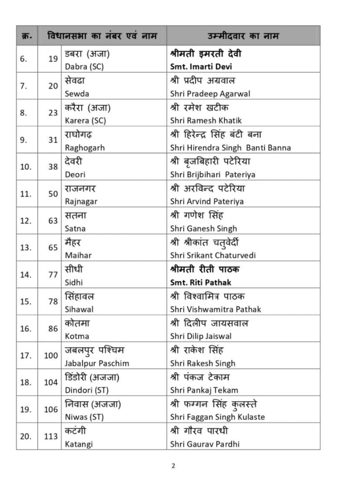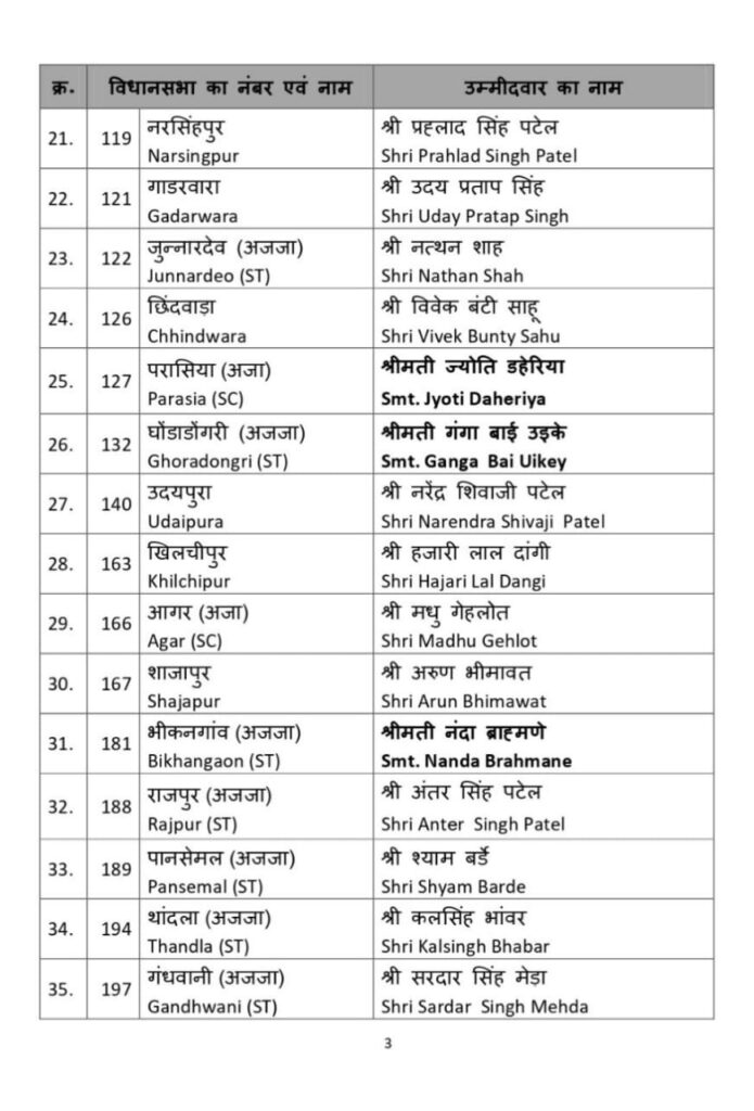 भाजपा की दूसरी सूची जारी 39 नाम किए घोषित घोड़ा डोंगरी से गंगा उइके परासिया से ज्योति डेहरिया