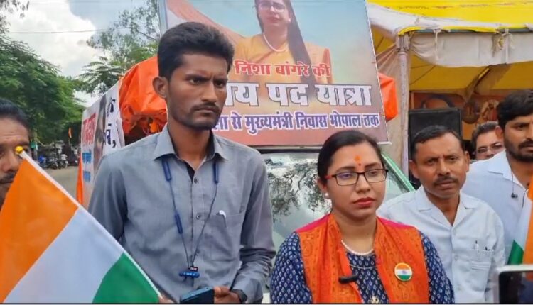 डिप्टी कलेक्टर निशा बांगरे ने 22 जून 2023 को अपना त्यागपत्र म प्र शासन को भेजा तब से लेकर आज तक उन का त्यागपत्र सरकार मंजूर नहीं कर रही है 28,09,2023 से अपने गृह क्षेत्र आमला के बस स्टैंड से अनंत चतुर्दशी पर भगवान श्री गणेश और माता दुर्गा के दर्शन किए. इसके बाद डॉ. भीमराव अंबेडकर की प्रतिमा पर माल्यार्पण कर अपनी न्याय पद यात्रा की शुरूआत की. निशा बांगरे अपने हाथ में भारत का संविधान और भागवद गीता लेकर न्याय यात्रा कर रही हैं. निशा बांगरे ने इस्तीफा स्वीकार करने की मांग को लेकर यह न्याय पद यात्रा शुरू की है. आमला से शुरू हुई यात्रा मुख्यमंत्री के गांव जैत होते भोपाल निवास तक जाएगी. अलग-अलग पड़ाव पार कर