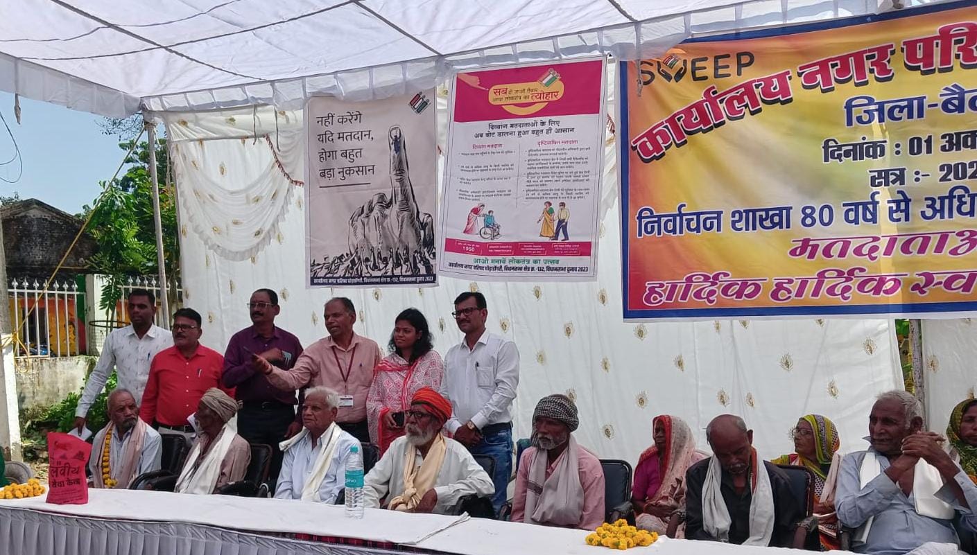 नगर परिषद घोड़ाडोंगरी जिला बैतूल द्वारा दिनांक 1 अक्टूबर 2023 अंतरराष्ट्रीय वृद्धजन दिवस पर निर्वाचन शाखा द्वारा 80 वर्ष पूर्ण कर चुके वृद्ध मतदाताओं का सम्मान पुष्प हार श्रीफल एवं श्याल से तहसीलदार महोदय महिमा मिश्रा घोड़ाडोंगरी एवं नायब तहसीलदार की उपस्थिति में किया गया । जिसमें निर्वाचन शाखा प्रभारी श्री नारायण घोरे , नगरी क्षेत्र के सभी बीएलओ,आंगनवाड़ी कार्यकर्ता, आशा कार्यकर्ता एवं