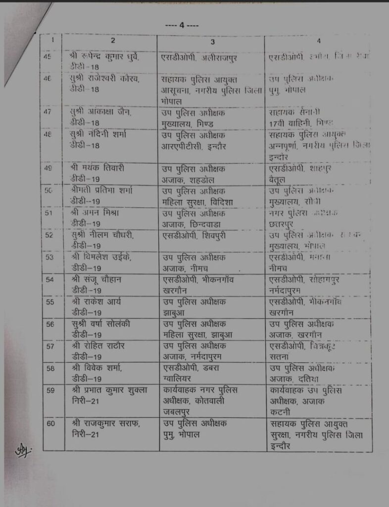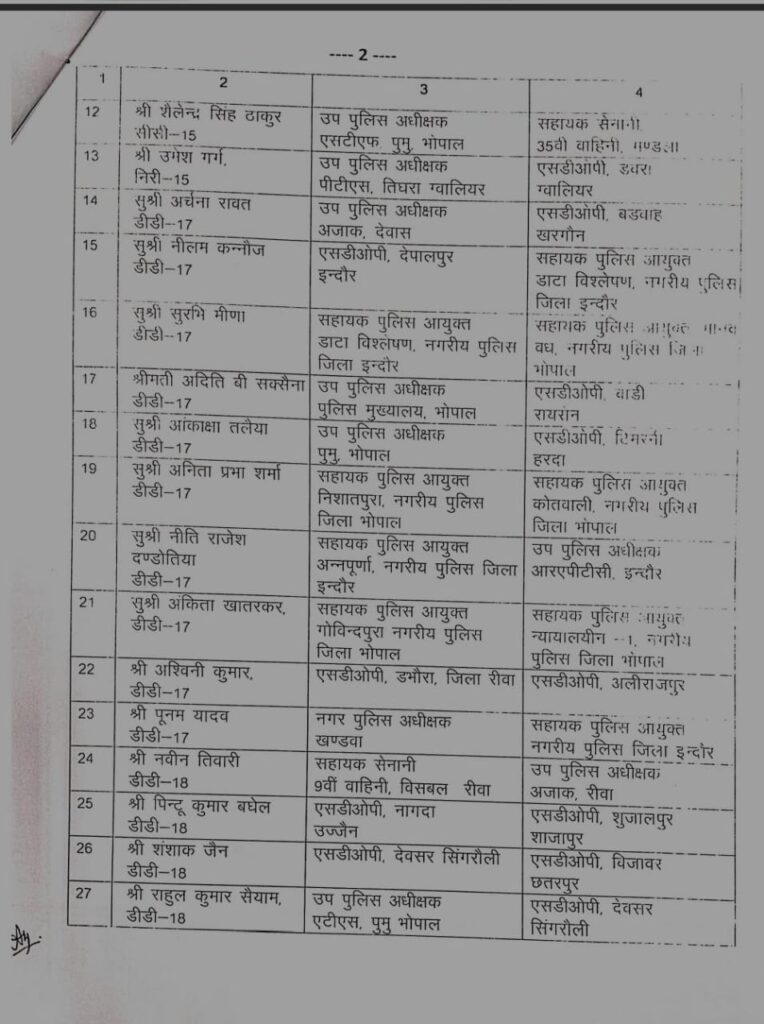 और एसडीओपी स्तर के अधिकारियों के ट्रांसफर किए गए