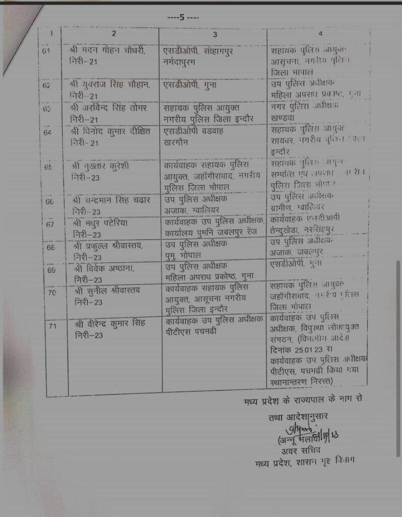 Transfer : पुलिस विभाग में 71 अधिकारियों के ट्रांसफर