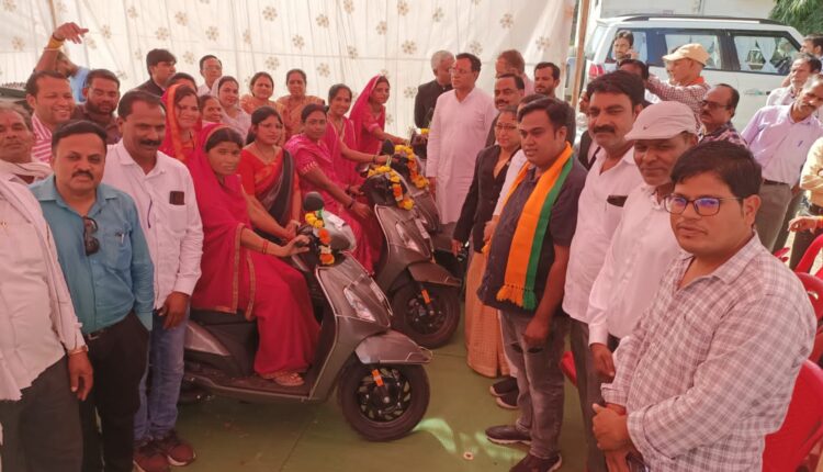 *विधायक डॉ योगेश पंडाग्रे ने स्व सहायता समूह की पर्यावरण मित्र महिलाओ को सौंपी स्कूटी , वही धारणाधीकर अंतर्गत हितग्राहियों को पट्टे*