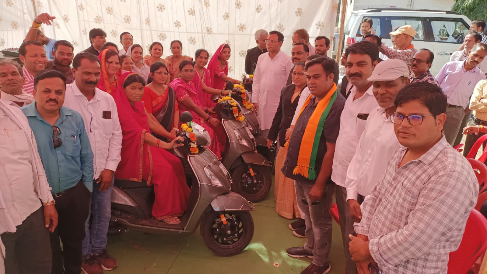विधायक डॉ योगेश पंडाग्रे ने भाजपा कार्यकर्ता पदाधिकारियों एवम गणमान्य नागरिको की उपस्थिति में ग्रामीण अजाविका मिशन एवम पंचायत एवम ग्रामीण विकास विभाग अंर्तगत मुख्यमंत्री पर्यावरण मित्र स्कूटी योजना अंतर्गत स्व सहायता समूहों की पांच महिला प्रतिनिधियों को स्कूटी की चाबी सौंपी, वही नगर पालिका क्षेत्र अंर्तगत धारणाधीकर अंतर्गत हितग्राहियों को पट्टे वितरित किए गए