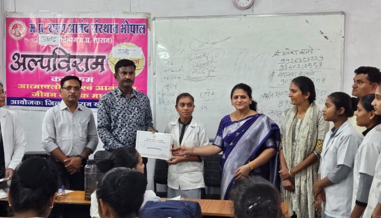 राज्य आनंद संस्थान द्वारा एक निजी पैरामेडिकल कालेज के १०० विद्यार्थियों के साथ एक दिवसीय अल्प विराम कार्यशाला आयोजित