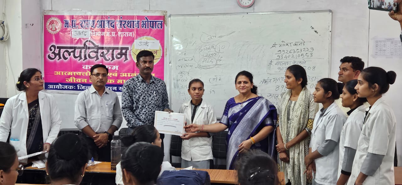खंडवा । राज्य आनंद संस्थान आनंद विभाग म.प्र शासन द्वारा शहर के एक निजी पैरामेडिकल कालेज (साई पैरामेडिकल कालेज रामनगर खंडवा )में शुक्रवार 6 अक्तूबर 2023 को सौ छात्र छात्राओं के साथ एक दिवसीय आनंद अल्पविराम कार्यक्रम आयोजित किया गया ।इसमें आनंदपूर्ण जीवन जीने की कला सिखाई गई । अतिथि के रुप मे डायरेक्टर डा.जगदीश कोगे ने जीवन में सकारात्मक रहने के फायदे बताए। मनीषा पाटील ने हमेशा जीवन में मदद करने वाले के प्रति कृतज्ञता का भाव रखने की बात कही।मास्टर ट्रेनर गणेश कानडे, के.बी. मंसारे ने आनंद की ओर सत्र लिया । नारायण फरकले,काजल इन्दौरे ने दीप प्रज्वलन कर कार्यशाला का शुभारंभ किया गया।अतिथि