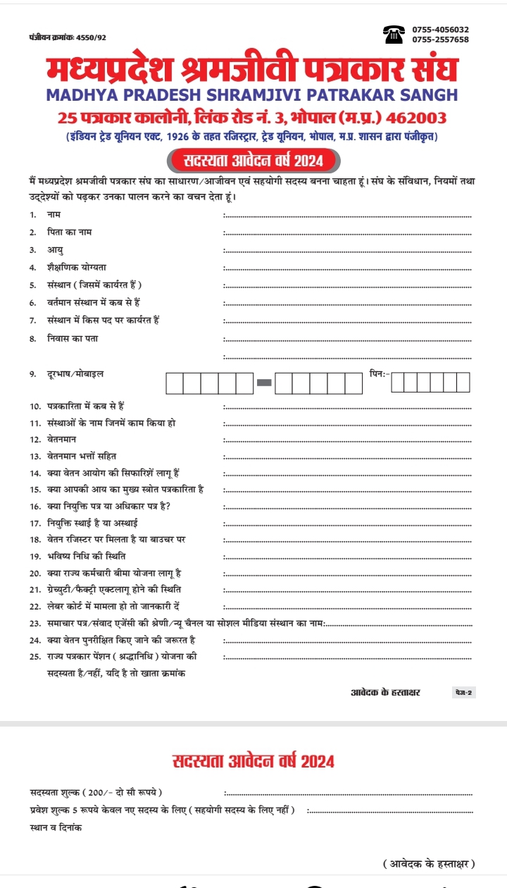 प्रांताध्यक्ष जी ने कहा है कि 15 दिसंबर को सदस्यता समाप्त कर 20 दिसंबर तक सदस्यता फार्म और शुल्क भोपाल मुख्यालय हर हाल में पोस्ट करदें।ताकि जनवरी के दूसरे सप्ताह यानी 15 जनवरी तक सदस्यता कार्ड मिलना शुरू हो सके ।