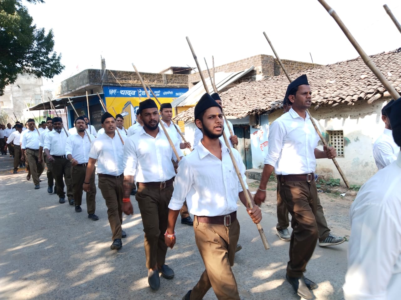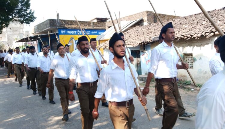 आरएसएस ने निकाला पथ संचलन किया शस्त्र पूजन का कार्यक्रम