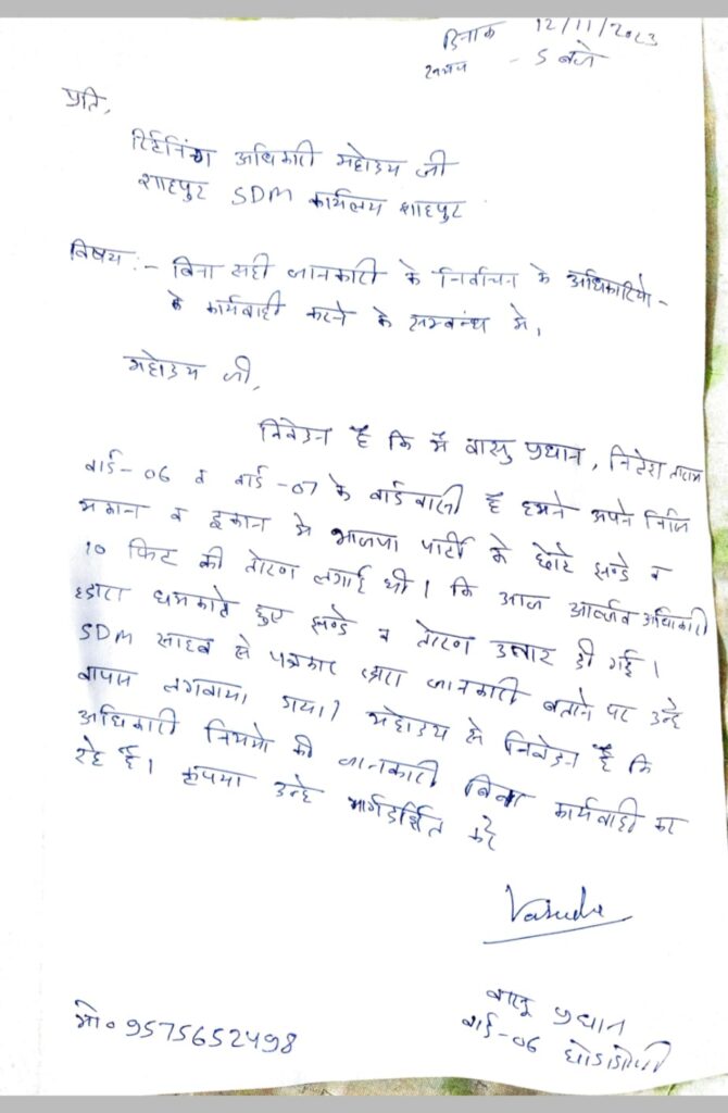 भारतीय जनता पार्टी के कार्यकर्ताओं ने चुनाव कार्य में लगे अधिकारी पर बिना जानकारी कार्रवाई करने के आरोप लगाते हुए रिटर्निंग अधिकारी को शिकायत की है। भारतीय जनता पार्टी युवा मोर्चा के मंडल अध्यक्ष सिद्धार्थ बिहारे ने बताया कि चुनाव अधिकारी द्वारा बिना जानकारी के बेवजह कार्यवाही करते हुए भाजपा के प्रचार सामग्री को हटाया गया जिसके लिए भाजपा कार्यकर्ता वासु प्रधान ने रिटर्निंग अधिकारी को शिकायत की है भाजपा कार्यकर्ताओं ने चुनाव अधिकारी द्वारा की जा रही कार्रवाई का वीडियो भी जारी करते हुए बताया कि अधिकारी द्वारा कार्रवाई की जाती है और जब उनसे उसके बारे में पूछा जाता है तो वह संतोषजनक जवाब भी नहीं दे पा रहे हैं। सिद्धार्थ बिहारे ने आरोप लगाया है कि भाजपा के प्रचार प्रसार और घोड़ाडोंगरी भाजपा प्रत्याशी गंगा सज्जन सिंग उईके को मिल रहे जनता के अपार जन समर्थन को देखकर कांग्रेस बौखला गई है और झूठी शिकायत कर रही है। देखे वीडियो
