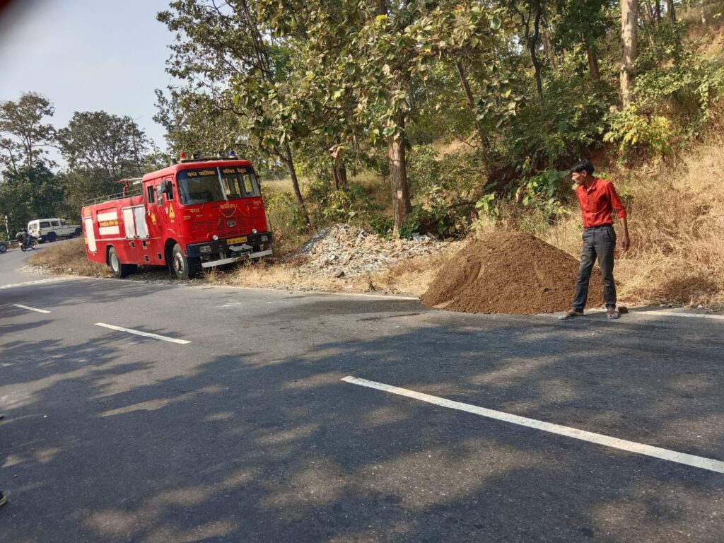 इंदौर से डीजल पेट्रोल लेकर आ रहा टैंकर बंजारी माई के पास पलटा l गाड़ी में भरा डीजल एवं पेट्रोल जंगल में सड़क पर बहा रानीपुर l बीती रात इंदौर से डीजल एवं पेट्रोल लेकर आ रहा टैंकर बैतूल से रानीपुर के बीच में बंजारी माई के पास अनत्रित होकर पलट गया जिसमें टैंकर में रखा डीजल एवं पेट्रोल जंगल में बह गया थाना प्रभारी अवधेश तिवारी ने बताया कि गंभीर घटना को देखते हुए मौके पर फायर ब्रिगेड एवं रेता की व्यवस्था की जाकर बल को तैनात किया गया एवं दो केरेनों को बुलाकर