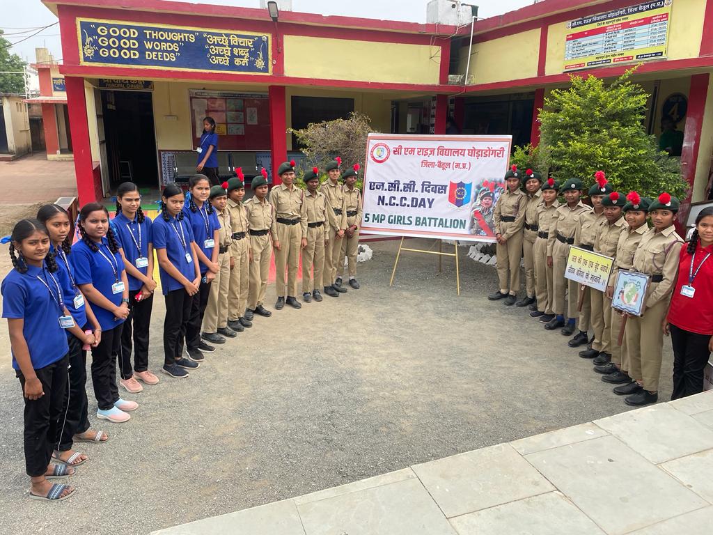 घोड़ाडोंगरी। सीएम राइज विद्यालय घोड़ाडोंगरी में 5 एम.पी. गर्ल्स बटालियन नर्मदापुरम के अंतर्गत संचालित एन.सी.सी. द्वारा आज एनसीसी दिवस मनाया गया। एनसीसी दिवस प्रतिवर्ष नवंबर माह के अंतिम रविवार को मनाया जाता है ।प्राचार्य विवेक तिवारी ने बताया की एनसीसी दिवस पर विद्यालय में विभिन्न गतिविधियां संचालित की गई जिसमें नशा मुक्ति पर चित्रकला प्रतियोगिता । नशामुक्ति, स्वास्थ्य एवं शिक्षा पर जागरूकता रैली निकाली गई विकासखंड मुख्यालय के सामुदायिक स्वास्थ्य केंद्र में मरीजो को फल वितरित किए गए