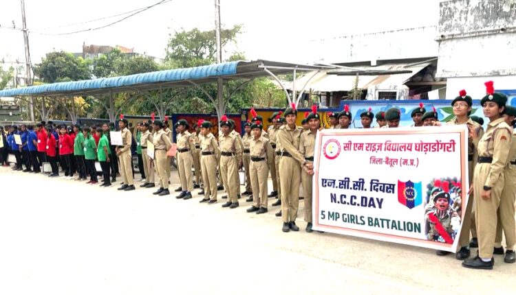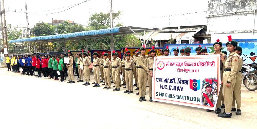 घोड़ाडोंगरी। सीएम राइज विद्यालय घोड़ाडोंगरी में 5 एम.पी. गर्ल्स बटालियन नर्मदापुरम के अंतर्गत संचालित एन.सी.सी. द्वारा आज एनसीसी दिवस मनाया गया। एनसीसी दिवस प्रतिवर्ष नवंबर माह के अंतिम रविवार को मनाया जाता है ।प्राचार्य विवेक तिवारी ने बताया की एनसीसी दिवस पर विद्यालय में विभिन्न गतिविधियां संचालित की गई जिसमें नशा मुक्ति पर चित्रकला प्रतियोगिता । नशामुक्ति, स्वास्थ्य एवं शिक्षा पर जागरूकता रैली निकाली गई विकासखंड मुख्यालय के सामुदायिक स्वास्थ्य केंद्र में मरीजो को फल वितरित किए गए