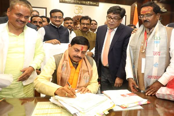 मुख्यमंत्री डॉ. यादव ने प्रभार ग्रहण करने के बाद प्रथम नस्ती पर हस्ताक्षर किये