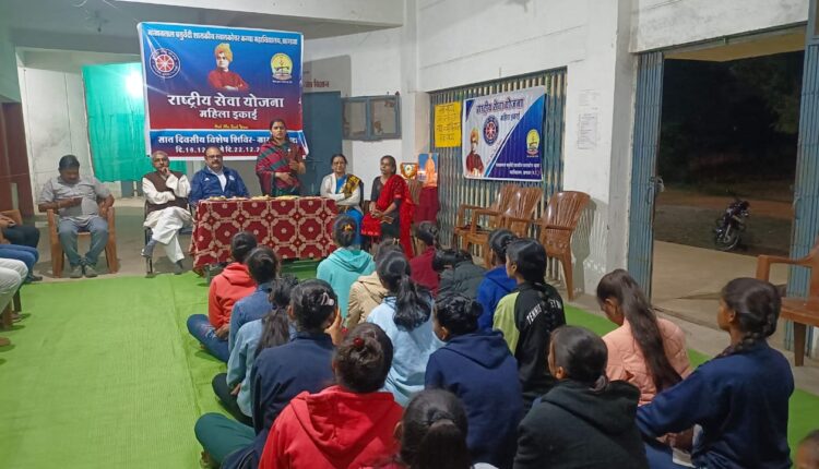 कार्यक्रम के आरंभ में राष्ट्रीय सेवा योजना कार्यक्रम अधिकारी प्रो.आरती दुबे द्वारा राष्ट्रीय सेवा योजना के विशेष शिविर में किए जाने वाले कार्यों स्वच्छता अभियान, वोटर आईडी की उपलब्धता, लैंगिक समानता, शिक्षा की स्थिति, एनीमिया एवं सिकल सेल एनीमिया,एड्स के प्रति जागरूकता एवं रक्तदान के प्रति जागरूकता के बारे में जानकारी प्रदान की।