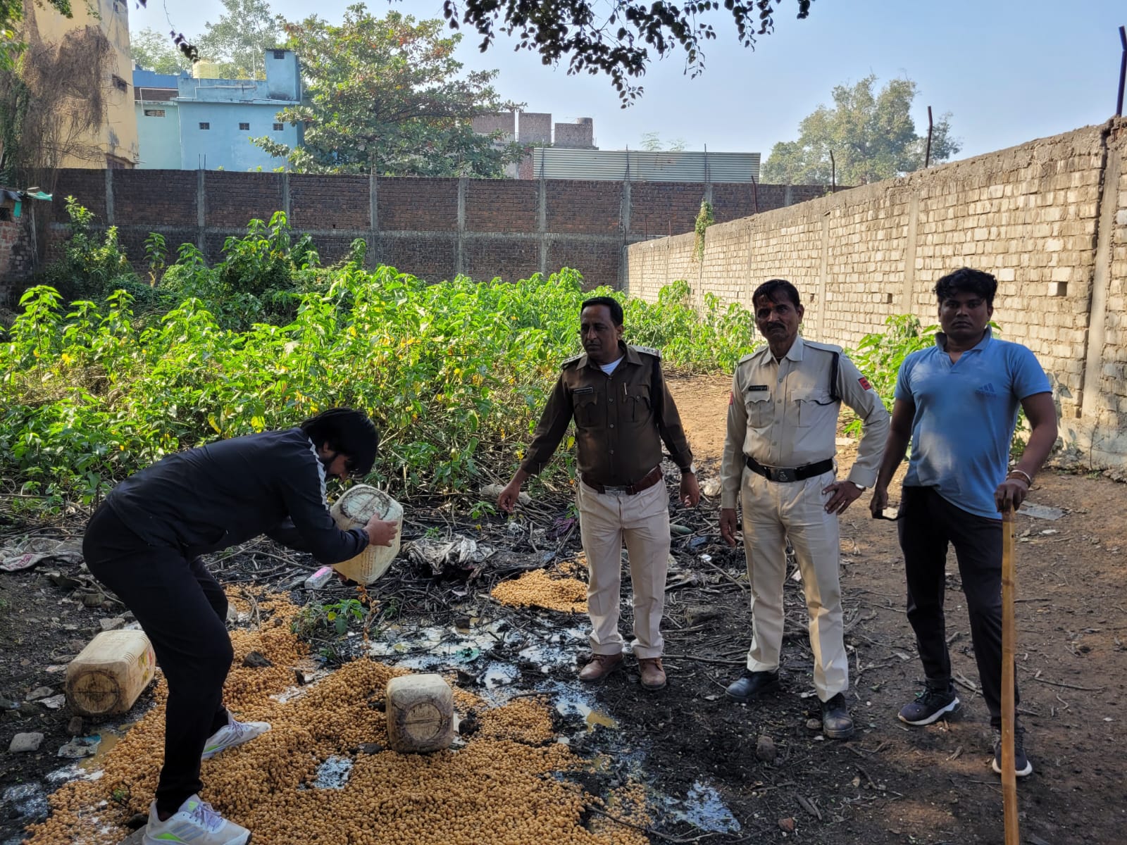 आज दिनांक 24/ 12 /2023 को कलेक्टर नर्मदा पुरम श्रीमान नीरज कुमार सिंह के निर्देशन में एवं जिला आबकारी अधिकारी श्रीमान अरविंद सागर के मार्गदर्शन में नर्मदा पुरम जिले में अवैध मदिरा परिवहन, निर्माण,विक्रय एवं संग्रहण के खिलाफ करवाई के दौरान माखन नगर क्षेत्र के कुच बंदिया मोहल्ला में लावारिश अवस्था में लगभग 600 किलोग्राम