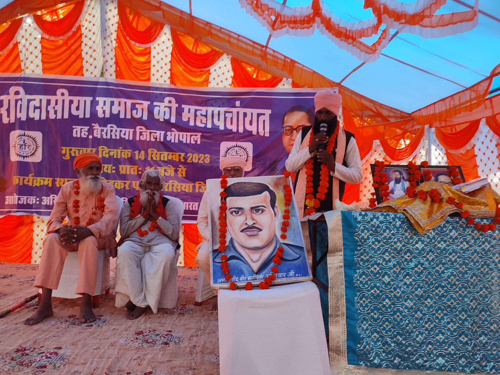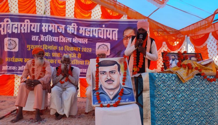 भोपाल। मध्यप्रदेश रविदासिया धर्म संगठन के अध्यक्ष श्री मानव सिंह अहिरवार ने बताया कि मध्यप्रदेश के महान क्रांतिकारी वीर मनीराम अहिरवार जी को हमारे संगठन में भोपाल की विधानसभा बैरसिया में समाज की महापंचायत आयोजन के अवसर पर शूरवीर मनीराम अहिरवार जी की फोटो की झांकी सजा कर उनके सुपौत श्री मूलचंद मेधोनिया का सम्मान दिया और महासभा के माध्यम से वीर मनीराम अहिरवार जी को राष्ट्रीय स्तर पर संमानित करने की पहल करने के लिए समूचा रविदासिया संगठन तैयार है।