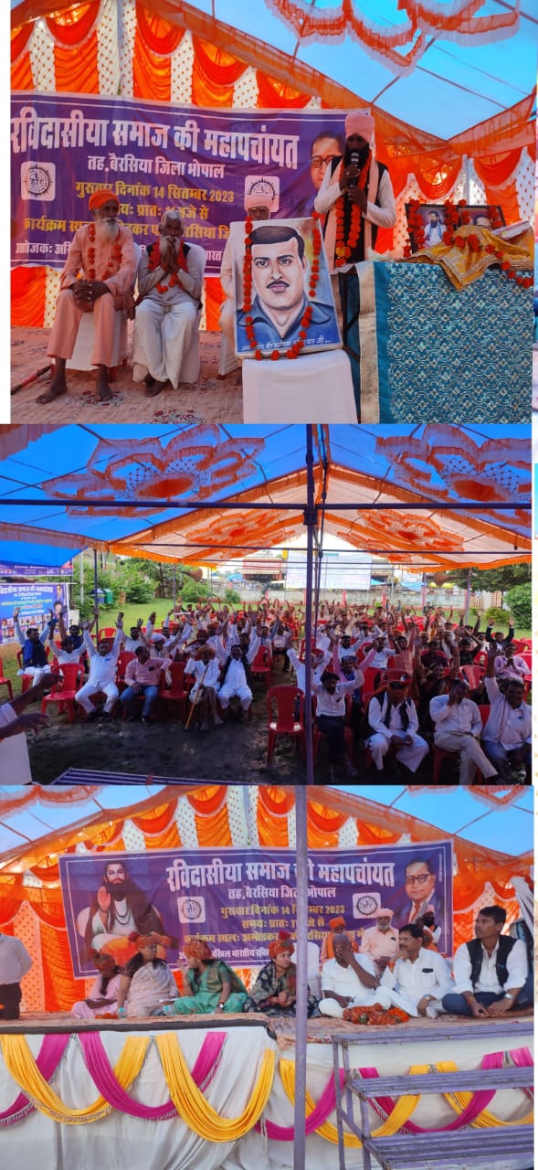 *भोपाल – अखिल भारतीय रविदासिया धर्म संगठन भारत की राज स्तरीय बैठक भोपाल के प्रसिद्ध संत शिरोमणि रविदास मंदिर में विशेष बैठक श्री श्री 108 श्री संत निरंजन दास जी महाराज चेयरमैन अखिल भारतीय रविदासिया धर्म संगठन के आशीर्वाद एवं राष्ट्रीय संत श्री सुखदेव जी महाराज के आदेशानुसार दिनांक 7 जनवरी 2024 को दोपहर 12 बजे से 4 बजे तक संत रविदास मंदिर जिंसी चौराहा भोपाल मध्यप्रदेश में आयोजित की जा रही है*।