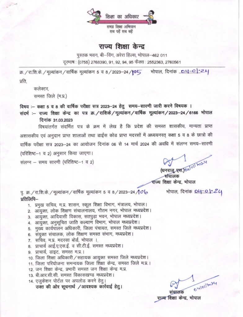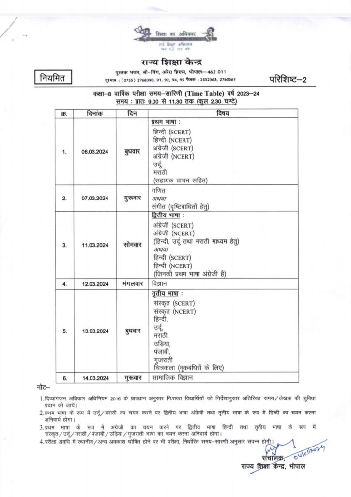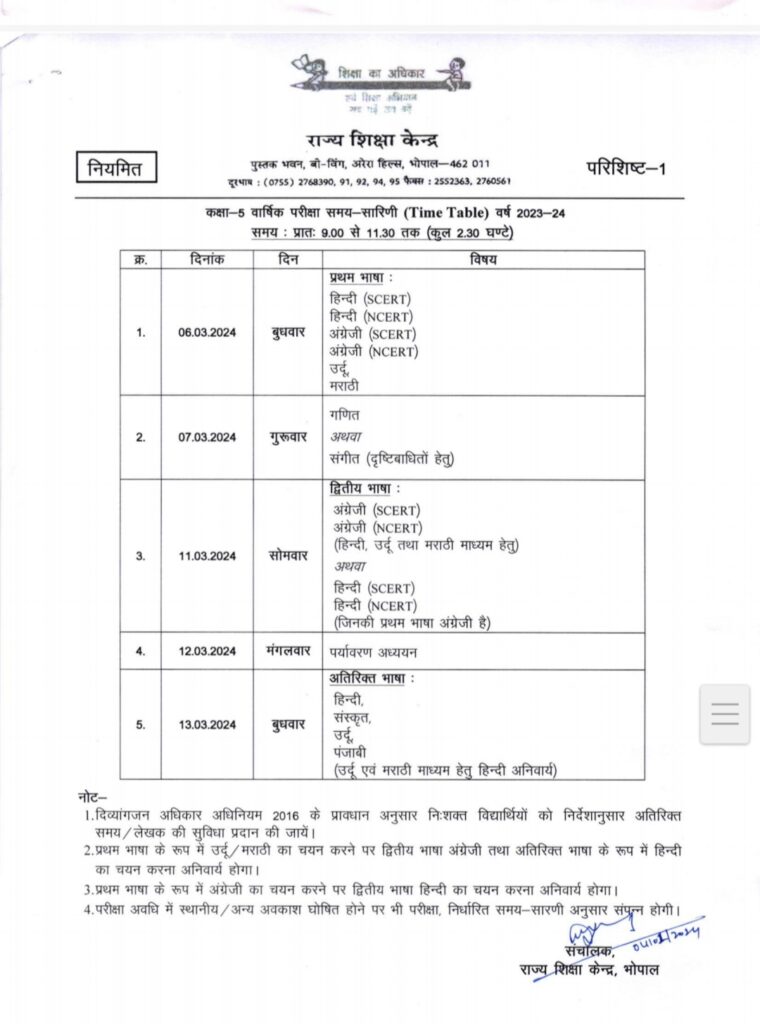 *MP में 5वीं-8वीं बोर्ड के एग्जाम 6 मार्च से 14 मार्च तक समाप्त, राज्य शिक्षा केंद्र ने जारी किया टाइम टेबल*