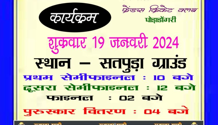 घोड़ाडोंगरी । आज हुये मुकाबला में पहला मुकाबला वर्मा घोड़ाडोंगरी और नरसिंहपुर के बीच था। जिसमें नरसिंहपुर की टीम नहीं आने के कारण वर्मा 11 को जीत दी गई ।दूसरा मुकाबला आर बॉयज घोड़ाडोंगरी और विशाल 11 सिलपटीके बीच हुआ।