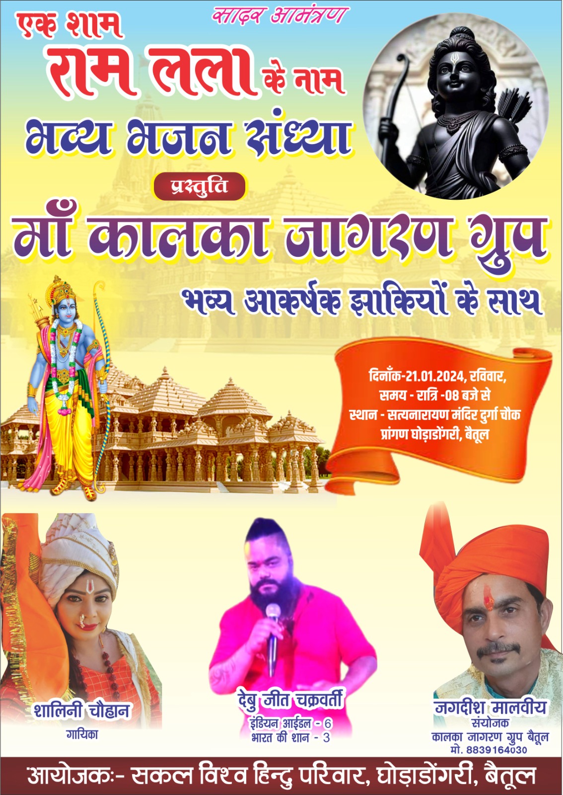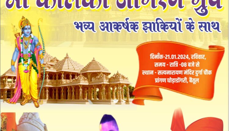 दिनांक-21.01.2024, रविवार, समय – रात्रि-08 बजे से स्थान – सत्यनारायण मंदिर दुर्गा चौक प्रांगण घोड़ाडोंगरी, बैतूल