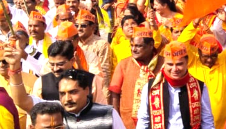 जगह जगह पुष्प वर्षा कर स्वागत किया गया। यात्रा में रामभक्तो द्वारा नृत्य कर झूमते हुऐ एक ही नारा एक ही राम जयश्रीराम जयश्रीराम के नारे लगाए