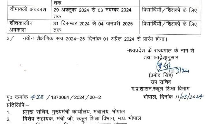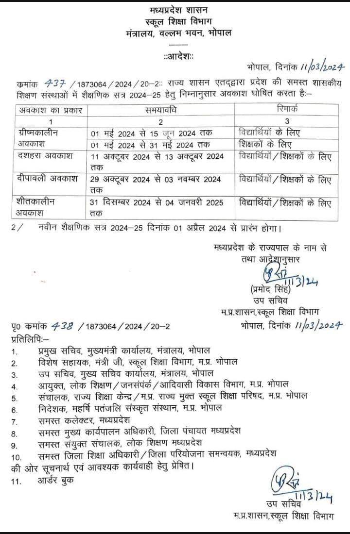 *भोपाल। स्कूल शिक्षा विभाग ने ग्रीष्मकालीन अवकाश घोषित किये*
