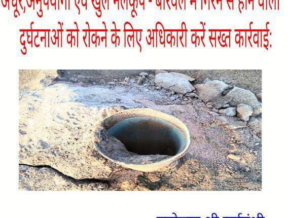 सुरक्षित किए बिना खुला छोड़ दिया जाता है। ऐसे में कई बार बच्चों के गिरने की दुखद घटनाएं भी हुई है। अनुपयोगी एवं खुले नलकूप, बोरवेल तथा ट्यूबवेल में छोटे बच्चों के गिरने से होने वाली दुर्घटनाओं पर अंकुश लगाने माननीय सर्वोच्च न्यायालय द्वारा भी सुरक्षा उपाय तथा गाइडलाइन जारी की गई है।